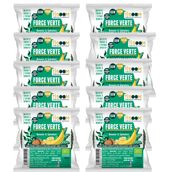 Nos galettes énergétiques, les barres énergétiques 100% TIBOOM sont un concentré d’énergie au naturel. Idéales pour combler les petits creux, elles sont également efficaces avant et pendant et après le sport. Vous pouvez les transporter partout avec vous, lors de vos randonnées, vos activités sportives ou tout simplement en encas dans votre journée. Vous pourrez ainsi faire le plein d’énergie. Ce pack de 10 galettes énergétiques vous permettra de faire le stock de votre galette énergétique préférée !