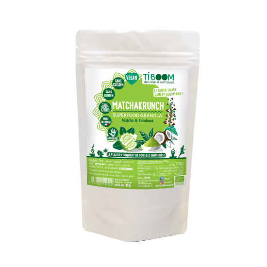 Découvrez le superfood granola Matchakrunch, un granola sucré riche en nutriments et en gourmandise !