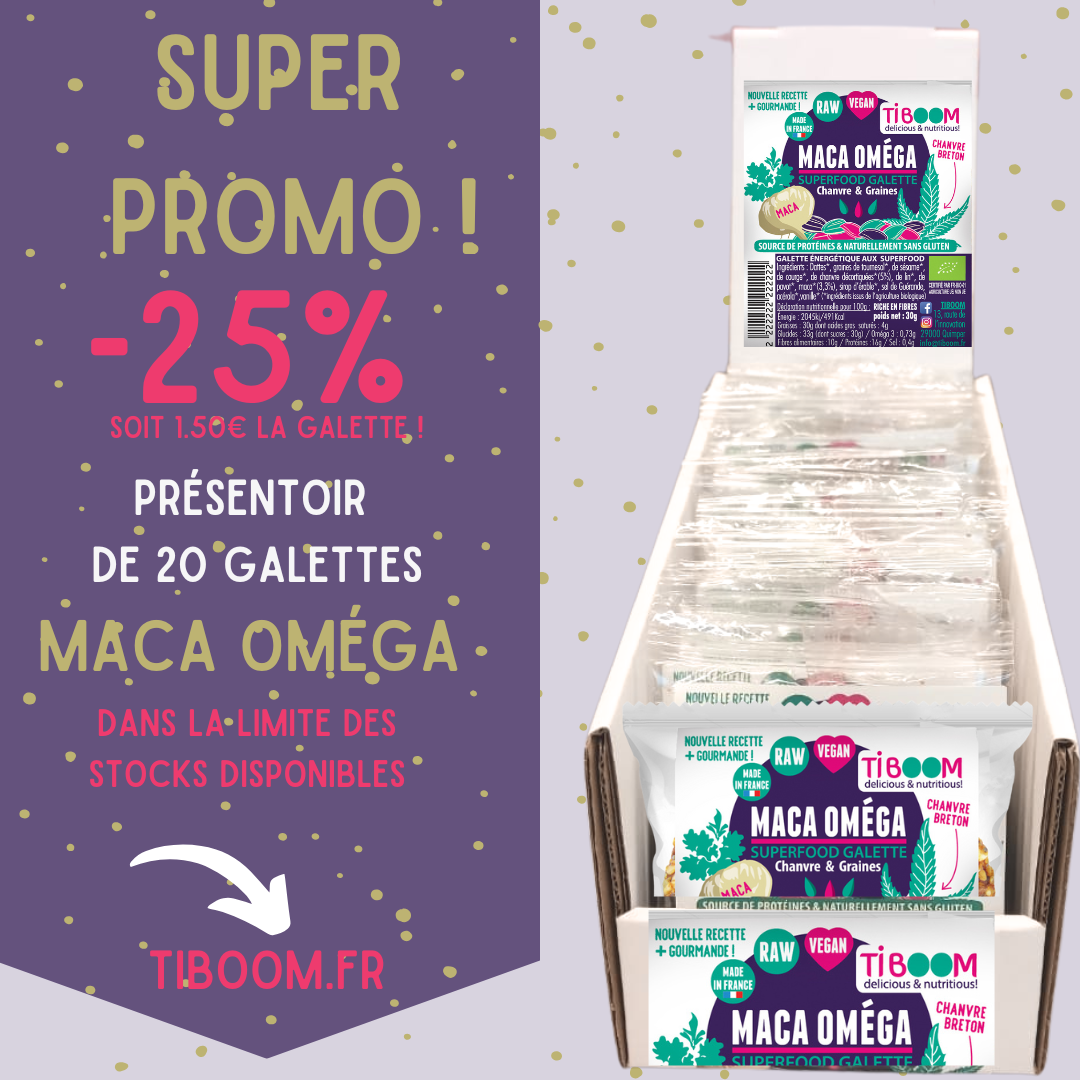 Nos galettes énergétiques, les barres énergétiques 100% bio TIBOOM sont un concentré d’énergie au naturel. Idéales pour combler les petits creux, elles sont également efficaces avant et pendant et après le sport. A transporter partout avec vous, lors de vos randonnées, vos activités sportives ou tout simplement en encas dans votre journée. Vous pourrez ainsi faire le plein d’énergie.